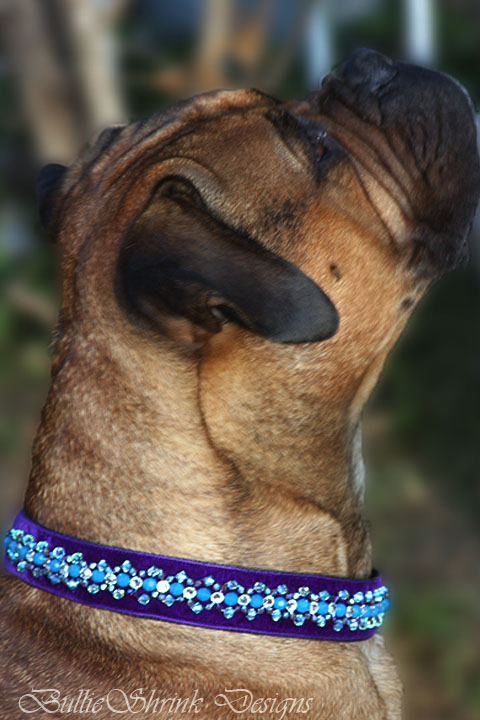 Next Image Purple Swarovski collar Ch. Brobens Breanna of Bullmast wearing the Royal Purple Velvet Woven Swarovski collar